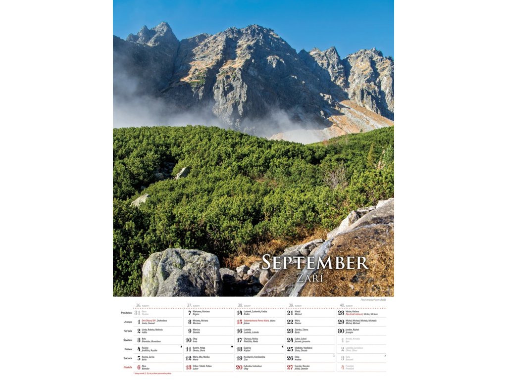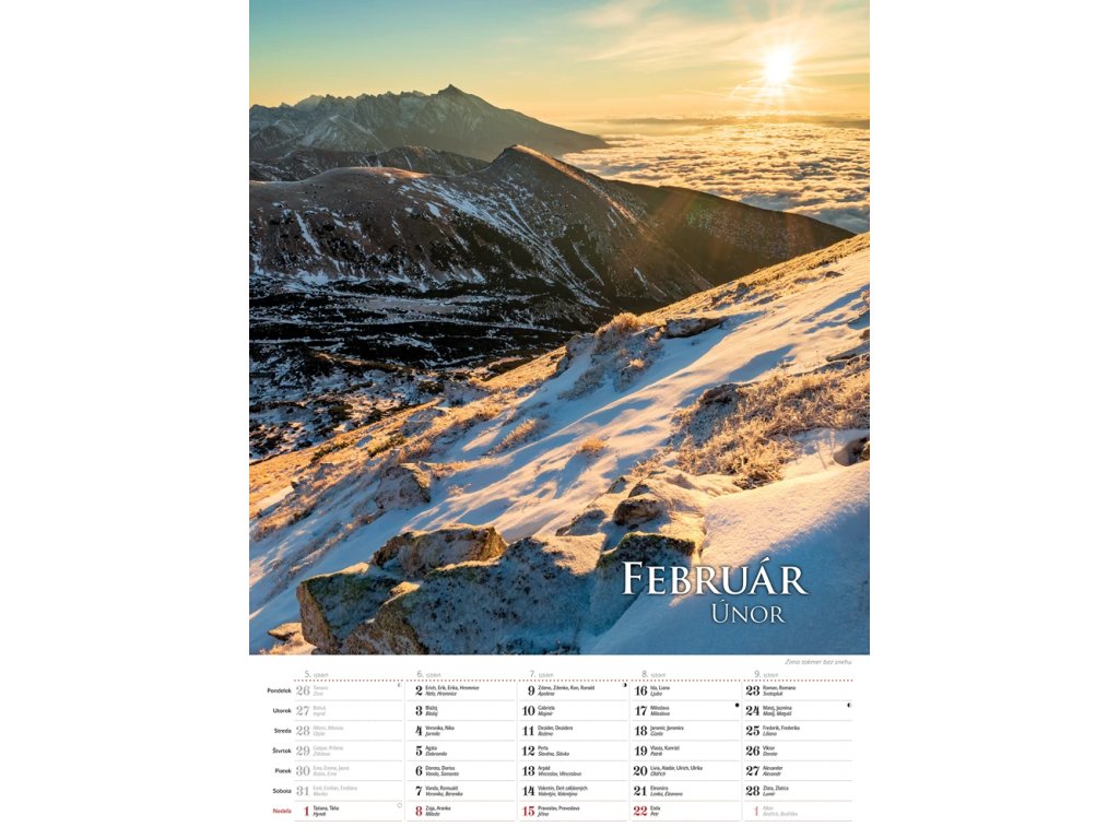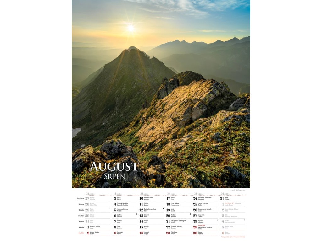 Krása našich veľhôr je zachytená v tatranských impresiách. Odhaľte všetky doteraz nepoznané podoby majestátnych Tatier v mesačnom nástennom kalendári so slovenskými a českými menami a štátnymi sviatkami oboch krajín.