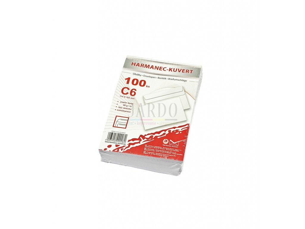 Biele samolepiace obálky rozmeru 114 × 162 mm, vyrobené z bezdrevného papiera, gramáž 80 g/ m2. Formát: C6Balenie: 100 ks