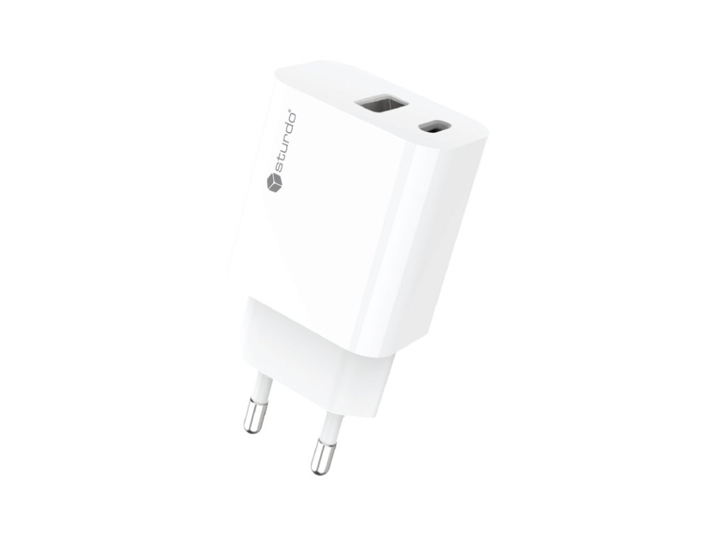 Sieťová nabíjačka Sturdo 3A PD 20W+USB QC3.0 biela